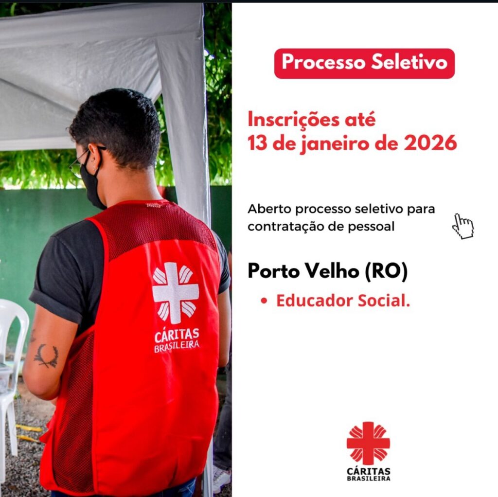 A Cáritas Brasileira está com processo seletivo aberto para contratação de Educador Social para atuação em Porto Velho (RO), no âmbito de um projeto emergencial de apoio a famílias afetadas por vulnerabilidades sociais na região Norte.