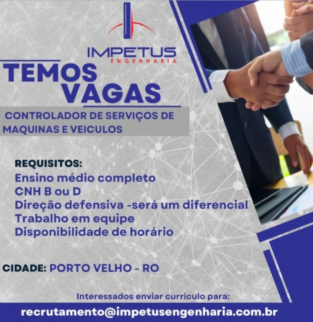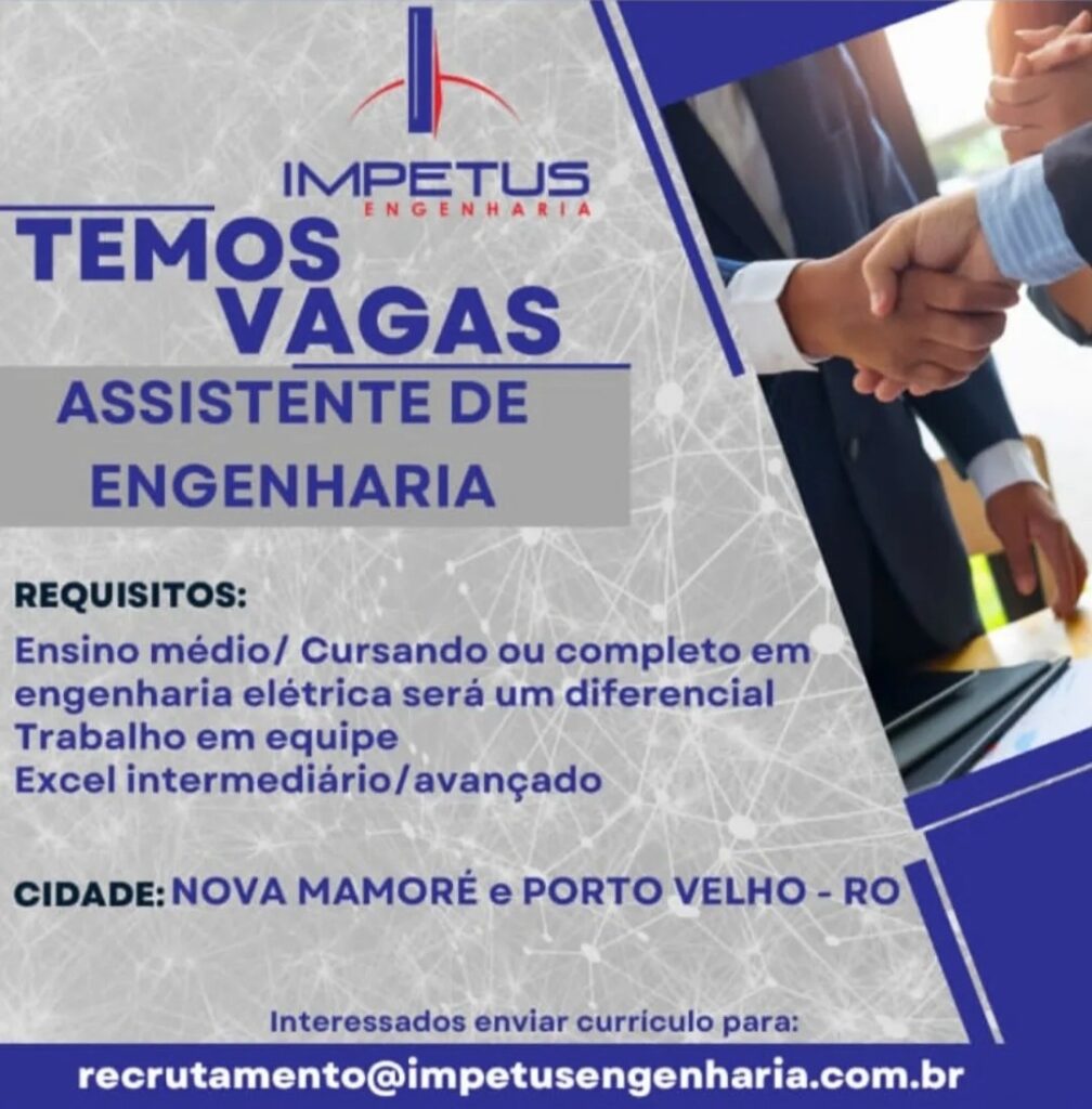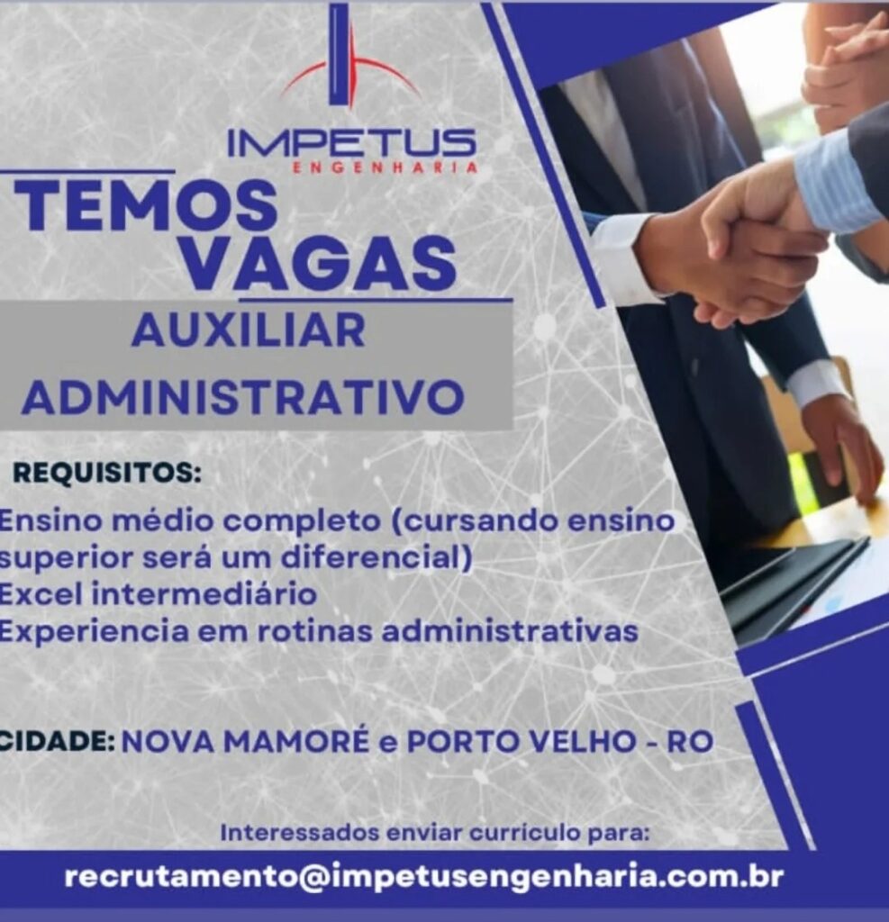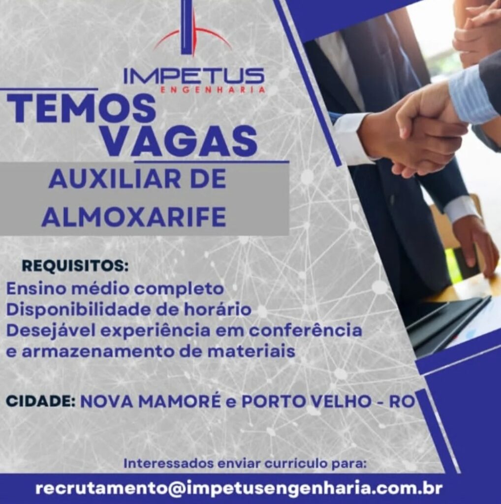 A Impétus Engenharia está com novas oportunidades de emprego abertas para os municípios de Nova Mamoré e Porto Velho (RO). As vagas abrangem diferentes áreas e níveis de formação, oferecendo boas chances para quem busca inserção ou recolocação no mercado de trabalho.