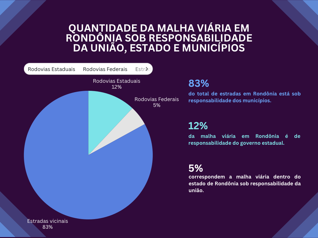 Segundo levantamento apresentado no Encontro de Prefeitos, os municípios rondonienses são responsáveis por 39.291,98km de estradas vicinais, o que corresponde a 83,31% de toda a malha viária do estado. Essas vias são fundamentais para o escoamento da produção, acesso às comunidades e circulação diária da população, mas enfrentam constante deterioração devido à falta de pavimentação e condições climáticas adversas.