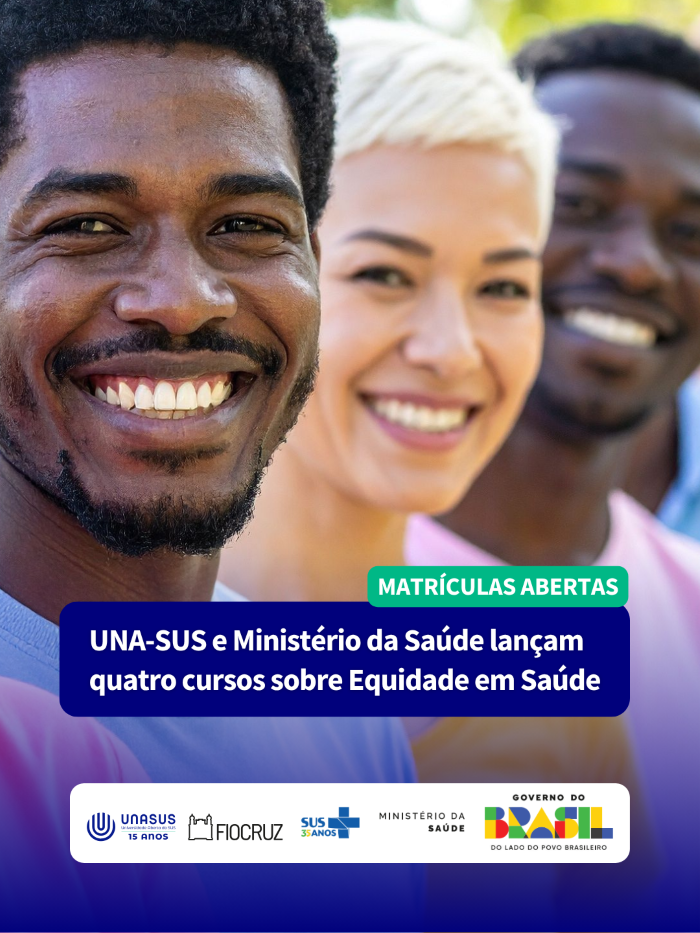 A Universidade Aberta do SUS (UNA-SUS) lançou quatro novos cursos gratuitos voltados à equidade em saúde, em parceria com a Fiocruz Brasília e o Ministério da Saúde. As formações são voltadas a profissionais da saúde e gestores do SUS interessados em aprimorar suas práticas de atendimento com foco na inclusão, diversidade e direitos humanos.